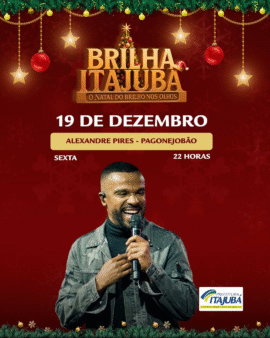 O Brilha Itajubá – o Natal do Brilho nos Olhos prepara uma noite especial e inesquecível para a população. Na sexta, 19, a partir das 22h, o Parque da Cidade será palco de um grande show gratuito com o cantor Alexandre Pires, considerado o mais esperado de toda a programação natalina.