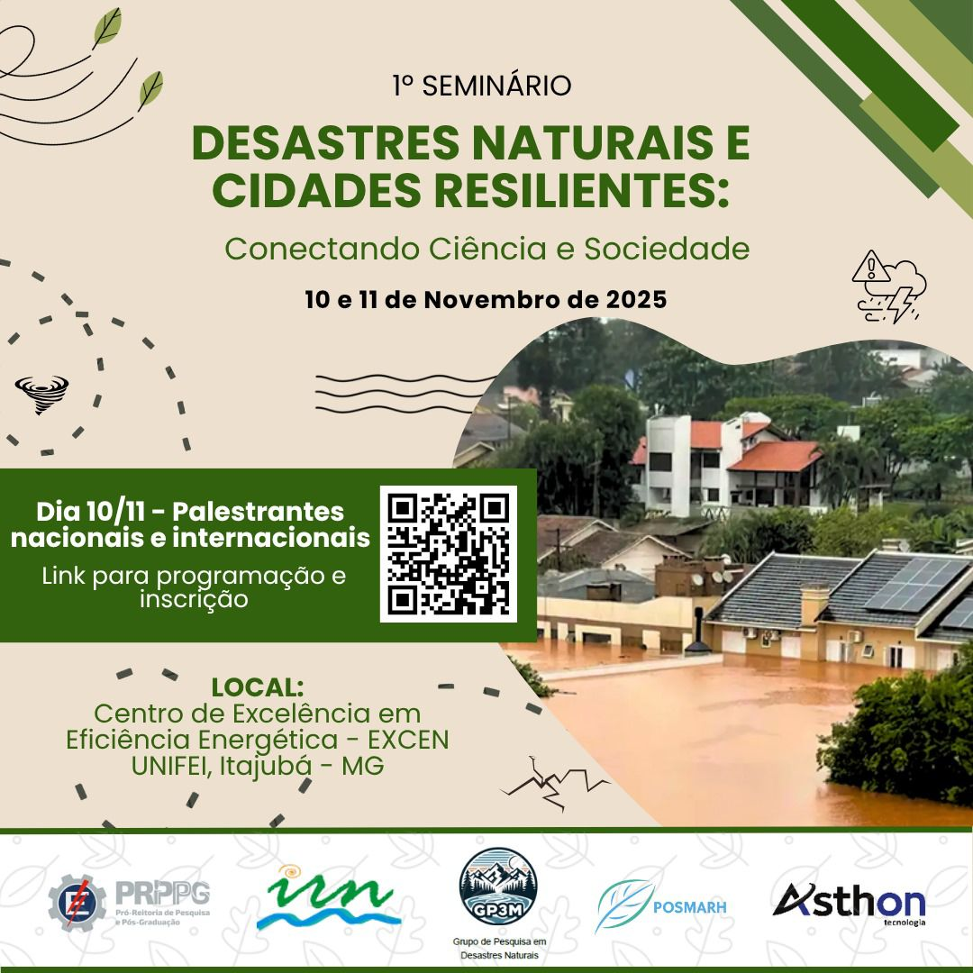 Nos dias 10 e 11 de novembro, a Defesa Civil de Itajubá participará do 1º Seminário de Desastres Naturais e Cidades Resilientes – Conectando Ciência e Sociedade, promovido na Unifei. O evento reunirá especialistas nacionais e internacionais, com o objetivo de fortalecer a integração entre ciência, gestão pública e resposta a emergências.