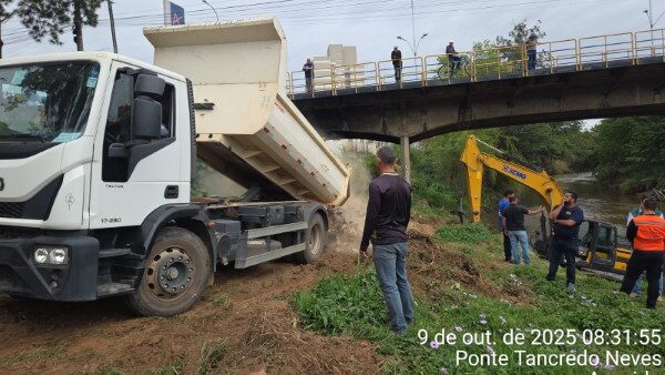 Prefeitura de Itajubá realiza limpeza preventiva do Rio Sapucaí na Ponte Tancredo Neves